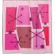 This 1950s midcentury modern vintage abstract art has wonky geometric rectangles with lines that make sputnik starbursts. Colours are shades of flamingo pink, red, and magenta.