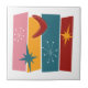 Make a statement in your tiling project with this bold atomic era mid century ceramic tile. With its pink, orange, blue, and red rectangles, stars, and boomerang it’s sure to get a few “wows”!