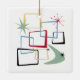 Add that splash of fun and colour to your Christmas tree with this fabulous atomic era mid century modern holiday ornament! This design features abstract squares, starbursts, and a boomerang in the colours of red, green, blue, yellow, and black...so funky!