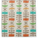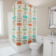 A mid century modern pattern with a funk kitsch style, featuring wacky lines and shapes associated with 1950’s abstract art. Light brown with orange, turquoise blue and chartreuse green.