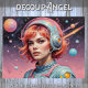 A chic portrayal of a woman wearing futuristic headphones, set against a vibrant pink background. This Atomic Age-inspired design blends mid-century modern aesthetics with retro-futuristic elements. Abstract space motifs and dynamic shapes evoke the excitement of the space age, reflecting the era’s optimism and fascination with the cosmos