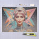 A sleek, futuristic portrayal of a woman with retro-style headphones, set against a bold fuchsia background. The space behind her is reimagined through stylised geometric patterns, embodying the Atomic Age’s fusion of mid-century modern design and cosmic inspiration. Dynamic shapes and abstract elements evoke the era’s optimism and fascination with the future