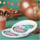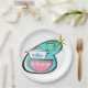 This Atomic Cookware Design Paper Plates will have you saying, “Wow, what an amazing thrift store haul!” The mid century modern boomerang with bright yellow starburst acts as the background for these perfectly kitschy dishes. A jadeite restaurant ware coffee mug, an iconically 1950s lidded casserole dish with cornflower blue floral design, and a marvelous flamingo pink daisy mixing bowl make it the ideal design for vintage collectors, thrift store and garage sale shoppers, or just mid century modern enthusiasts.