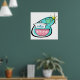 This Atomic Cookware Design Poster will have you saying, “Wow, what an amazing thrift store haul!” The mid century modern boomerang with bright yellow starburst acts as the background for these perfectly kitschy dishes. A jadeite restaurant ware coffee mug, an iconically 1950s lidded casserole dish with cornflower blue floral design, and a marvelous flamingo pink daisy mixing bowl make it the ideal design for vintage collectors, thrift store and garage sale shoppers, or just mid century modern enthusiasts.