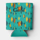 This can cooler has a mid-century modern atomic design of diamonds, and starbursts on a field of turquoise. Keep the name, change it, or delete it completely.