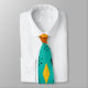 This necktie has a mid-century modern atomic design of diamonds, and starbursts on a field of turquoise.