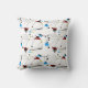 Atomic Era Inspired Pillow Design, Mid Century mobiles style hand drawn by artist. Grey. red, blue and white are the colours of this fabric recreation.