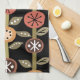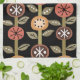 Atomic Era Flowers Art Black Colourful Tea Towel