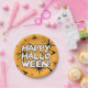 A spooky mid century modern Halloween pattern with 1950s boomerangs and sputnik starbursts, in orange and black.