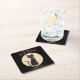 Atomic Futuristic Black Cat Moon with text Square Paper Coaster