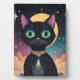 Atomic Futuristic Cosmic Black Cat in Moonlight Plaque