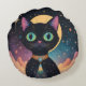 Atomic Futuristic Cosmic Black Cat in Moonlight Round Cushion