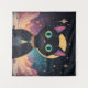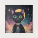 Atomic Futuristic Cosmic Black Cat in Moonlight Tapestry