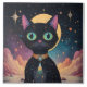Atomic Futuristic Cosmic Black Cat in Moonlight Tile