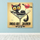 Atomic Futuristic Space Age Black Cat Martini Canvas Print