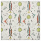 My original vector illustration of retro Atomic Kitty Rockets, satellites, moons, atoms, starbursts, galaxies, pulsars, sound waves, and shooting stars, in off white, tan, gold, aquamarine, dark orange, black and a hint of pink.
