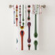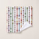 This towel set has a mid-century modern design of atomic lines with "feathers" on either end and an outline around each one.