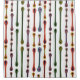 This shower curtain has a mid-century modern design of atomic lines with "feathers" on either end and an outline around each one.