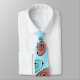 This necktie has a mid-century modern atomic design of oval outlines with small circles on them and solid coloured ovals inside them.
