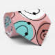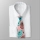This necktie has a mid-century modern atomic design of oval outlines with small circles on them and solid coloured ovals inside them.