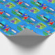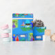 This Atomic Palm Springs Cocktail Party Wrapping Paper is kitschy sophistication at its most fabulous! The 1960s style, minimalist art design features a mid-century modern stone fireplace in a shade of blue that coordinates perfectly with the bright cobalt of the rest of the living room. You can see a spectacular view of the tropical backyard through the sliding glass doors. The room is decorated in the height of space-age fashion, complete with modern art, cone wall sconces, two-tiered orange side table, and an olive green striped rug. The glamourous men and women are sipping their orange martinis. The man in the bright blue suit with a bow tie is livening things up by taking the fiberglass shade off the lamp and placing it on his head to the amusement of the other guests. Now, it's a party!