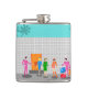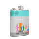 You are invited to the social event of the year with this Atomic Palm Springs Stewardess Party vinyl wrapped flask design. Join these three vintage flight attendants from rivaling airlines as they check into their kitschy 1960s breezy block hotel. One of the fabulously hunky bellhops in a retro hot pink uniform holds the orange door while the other struggles with the women's luggage. Teal palm trees sway in the background of the impossibly turquoise sky as a jetliner flies overhead. This design will have you saying, “On your mark, jet set, go!”