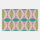 Oh, gee! It’s Atomic Pink Ogee and Starbursts Rectangle Stickers! It’s a modern take on a classic pattern (a mid century modern take, to be exact). This design features a pink background with teal and green oval shapes overlaying black, vertical lines of atomic diamonds and starbursts. This mod product brings everything that was good and virtuous about the 60s into modern day. What? Was that laying it on a little thick? Well, it is a vintage inspired thing of beauty.
