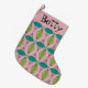 Oh, gee! It’s a Personalised Atomic Pink Ogee and Starbursts Christmas Stocking! It’s a modern take on a classic pattern (a mid century modern take, to be exact). This design features a pink background with teal and green oval shapes overlaying black, vertical lines of atomic diamonds and starbursts. This mod product brings everything that was good and virtuous about the 60s into modern day. What? Was that laying it on a little thick? Customise with a name. Well, it is a vintage inspired thing of beauty.