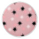 This Atomic Pink Starbursts Ceramic Knob has all of the mid century modern fun of your grandma’s kitchen, minus the sticky linoleum. The kitschy design features a pink background with gold speckles and randomly placed starbursts in black and two shades of pink. This vintage inspired pattern is mod enough to be stylish and retro enough to be classic. Serve up some love with this minimalist design.