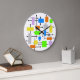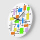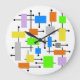 This clock has a mid-century modern design of retro rectangles of several colours. Colourful and fun!