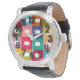 This men's watch has a mid-century modern design of squares with rounded rectangles with antenna in mid-century modern colours. Want the same design in different colours? Message me.