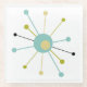 This colourful mid century modern glass coaster features an atomic starburst in turquoise blue, avocado green, cream, and black. This will add a pop of colour to your coffee table!