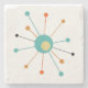 Atomic Starburst Orange Turquoise Mid Mod Stone Coaster