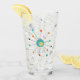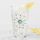 This fabulous mid century modern glass tumbler features an atomic starburst in turquoise blue, two shades of orange, cream, and black. This will add a bit of fun to your drink!