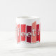 Enjoy your afternoon coffee break retro style with this mid-century inspired coffee mug with atomic style graphic images in shades of red and pink. The mug reads "coffeetime" in a retro diner style font, and fun colours that will take you back in time.