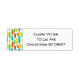 These return address labels have a mid-century modern design of long ovals in yellow, orange, green, and turquoise with black lines with circles on the ends.