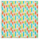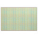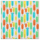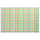 This fabric has a mid-century modern design of long ovals in yellow, orange, green, and turquoise with black lines with circles on the ends.