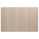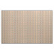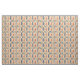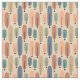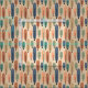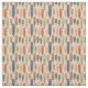 This fabric has a mid-century modern design of long ovals in peach, green, blue, teal, and light brown with black lines with circles on the ends.