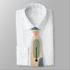This necktie has a mid-century modern design of long ovals in peach, green, blue, teal, and light brown with black lines with circles on the ends.