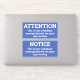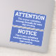 Factory or Office warning signs. Two attention notices as sticker signs. Change the wording to display your own message on each. Medium size. 6 inches wide.