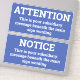 Two attention notices as sticker signs. Change the wording to display your own message on each. Large size. 14 inches wide.