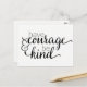 In this modern day of technology handwritten love notes are becoming a lost art. Why not brighten someone's day with a surprise motivational life quote postcard. This typography postcard features the quote Have courage & be kind printed in black fonts.