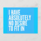 ATTITUDE MOTTO I HAVE ABSOLUTELY NO DESIRE TO FIT POSTCARD