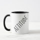 ATTITUDE written in bold, black, modern font typeface written diagonally across the face and back and this mug. This design is available in many colours and styles.