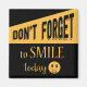 This fun motivational magnet says it all....Smile today! This cute magnet features a happy face with "Don't forget to smile today" printed in bold typed and script fonts highlighted against a yellow gold and black background,