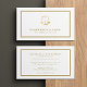 Lawyer legal conselor attorney at law firm elegant gold and white business card with scales of justice logo, and simple modern minimalist typography. Suitable for a law firm, professional legal practitioner, judge, solicitor, or consultant.