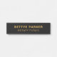 A simple custom business Notary Public Black Gold Door Sign template in a modern minimalist style which can be easily updated with your employee name and title or department.