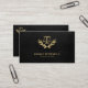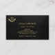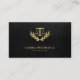 Luxury upscale simple elegant business card for an attorney at law lawyer consultant legal adviser with faux gold scales of justice and a laurel wreath on a stylish black leather look background. Please note that there is NOT REAL LEATHER, the leather look is obtained by PRINTING.