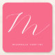 Attractive Monogram Pink White Modern Plain Square Paper Coaster