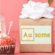 This awesome Au-some sticker uses the chemical element symbol for gold, being "Au," as the "awe" in "awesome." You are awesome with a golden shine. The "Au" looks how it does on a periodic table, including number and weight.